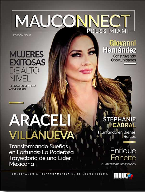 La Dra. Araceli Villanueva León fue destacada en la portada de la revista MauConnect Press Miami, edición No. 18, donde se le dedicó un artículo especial titulado “Transformando Sueños en Fortunas: La Poderosa Trayectoria de una Líder Mexicana”.
